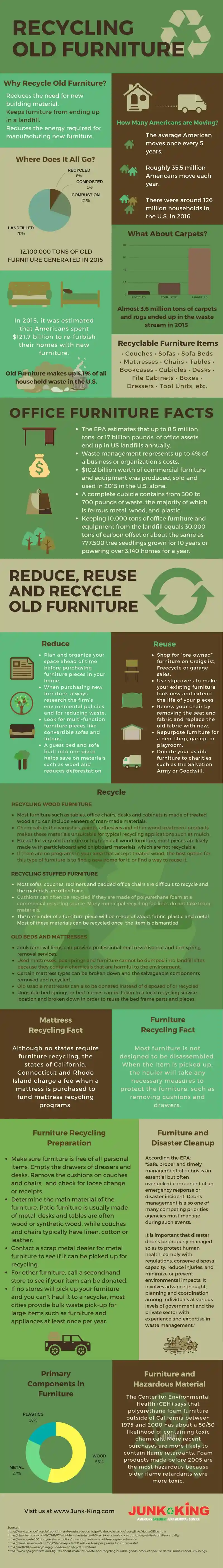 We've created a handy information guide that details a number of facts, statistics, and information about furniture recycling, as well as some helpful tips for specific types of furniture recycling.